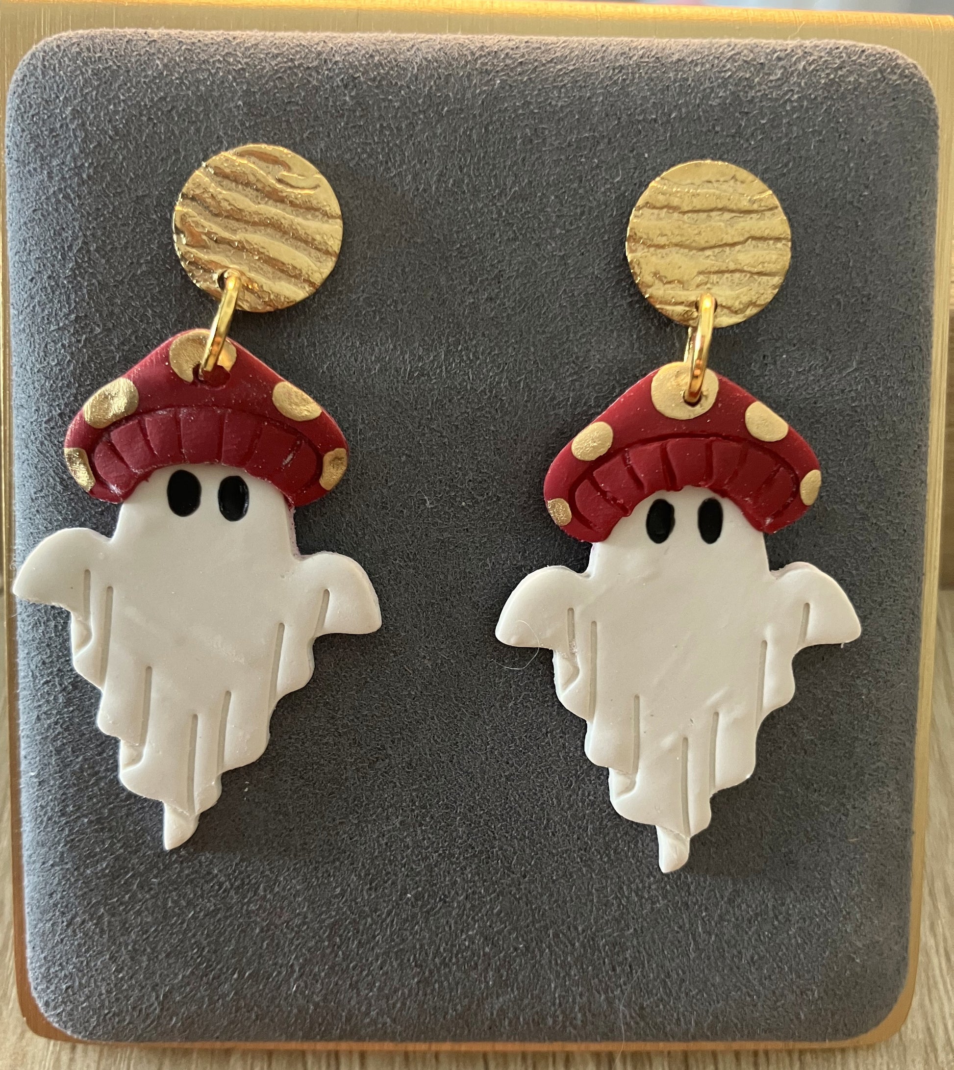 -Lightweight, handmade polymer clay ghosts with little shroom hats