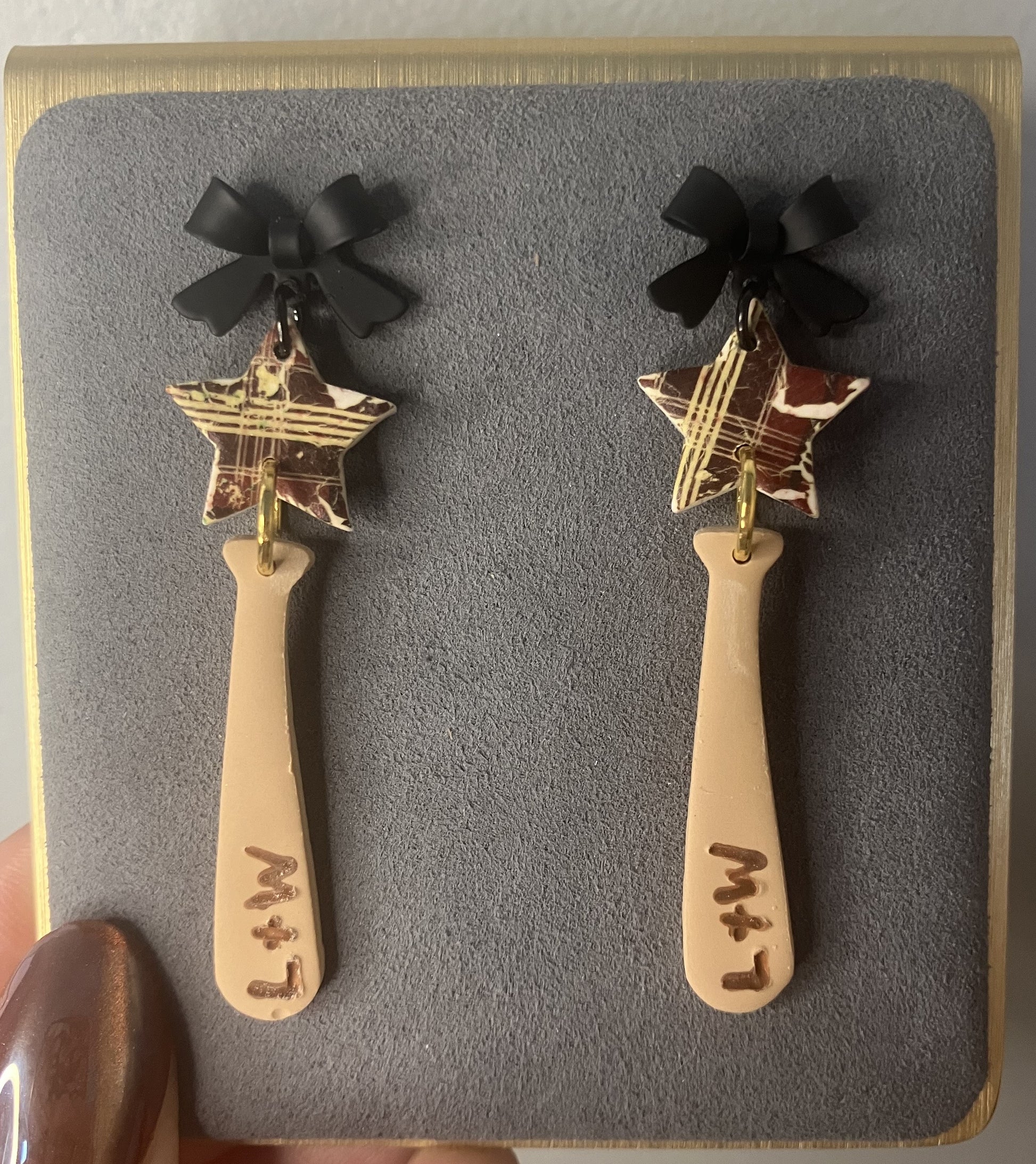 Set of earrings based off of W. Tames in S. Hagan's "Tagged Out." Series